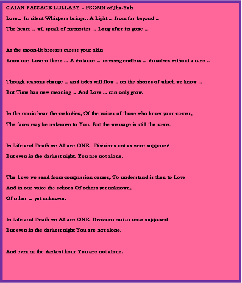 GAIAN PASSAGE LULLABY – PSONN of Jha-Yah